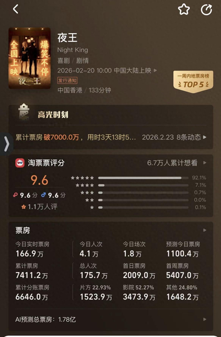 2026年春节档我钦慕的发现,竟然还有一部港片上线,况兼这部港片有点神奇,仅限两广地区开演! 算作2026年春节档独一的纯正港片,《夜王》凭借“黄子华+郑秀文”这块金字牌号,加上那看似禁忌实则深情的夜场题材,硬生生在搏杀惨烈的档期里杀出一条血路 。