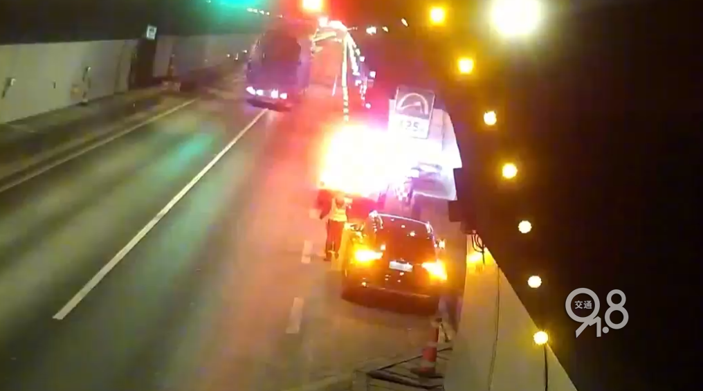8分钟生命接力救援 刘海洋当即说道:“你扶着我,我送你去医院。”将现场情况报告至综合勤务室后,大队立断启动警医联动,通知救护车在百丈收费站外广场待命,一场与时间赛跑的比赛就此展开。刘海洋拉响警报,示意过往车辆注意避让,只为能够为顾女士争取更多时间,更快地送到救护车上。