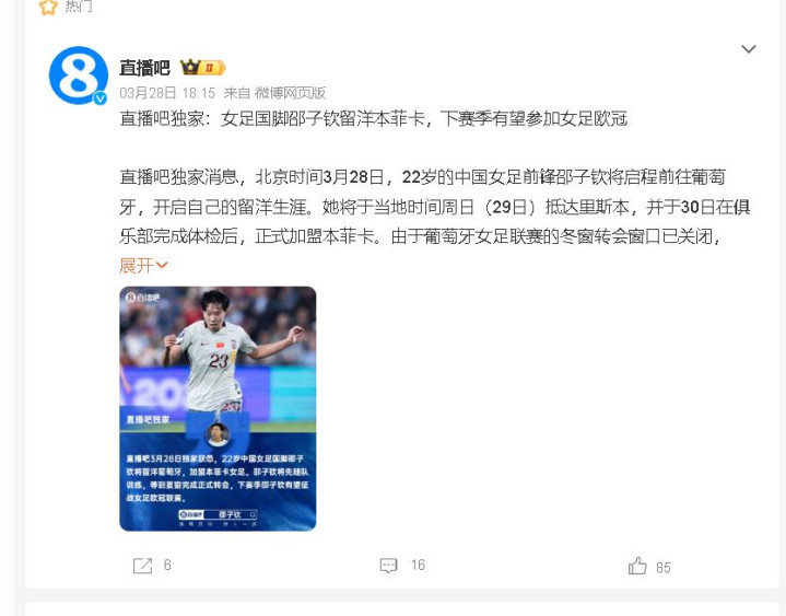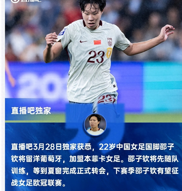 当中国男足还在为寰球杯预选赛抵御时,一位22岁的女足小姐照旧用实力敲开欧冠权门的大门!中国女足时尚邵子钦将开拔飞赴葡萄牙里斯本,认真加盟本菲卡女足,这支上赛季葡超亚军、下赛季欧冠参赛队,行将迎来首位中国模样!她的加入,能否让中国足球从此崛起?