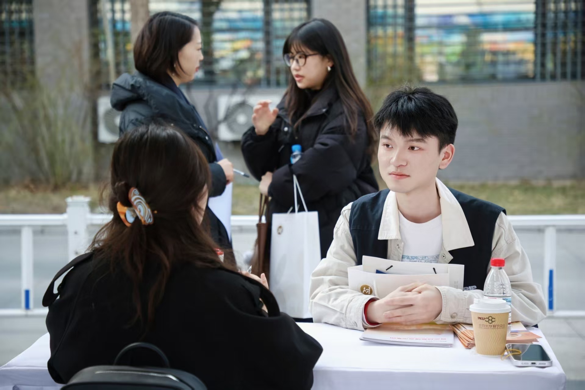 “粤”式全过程服务护航,诱骗后生东说念主才扎根 为让后生学子全所在感受广东引才的忠诚与活力,招聘现场悉心建树多元互动专区,集策略服务、科创体验、创业宣介、文化互动于一体。 在东说念主才服务方面,现场设有东说念主才礼遇专区,提供全过程东说念主才服务,涵盖住房预登记、后生东说念主才认定等事项,让学子宽心筑梦湾区。上海交大专场立异引入“东说念主才直播舱”,以直播形式解读岗亭信息、在线修起学子疑问,杀青线上线下同步招聘;现场还建树自助求职一体机,助力学子高效对接中意职位。 在科创体验方面,复旦大学专场打造3.6×2.4米千里浸式科创体验空间“AI创万物”专区,采集AI眼镜、空气架子饱读、影石360、韶音耳机等前沿智能硬件,让学子触摸改日产业科创后果。企业互动区带来安诺咖啡机器东说念主等智能运用演示,同步开展“众创杯+大公坊”路演共享,激励立异创业眷注。