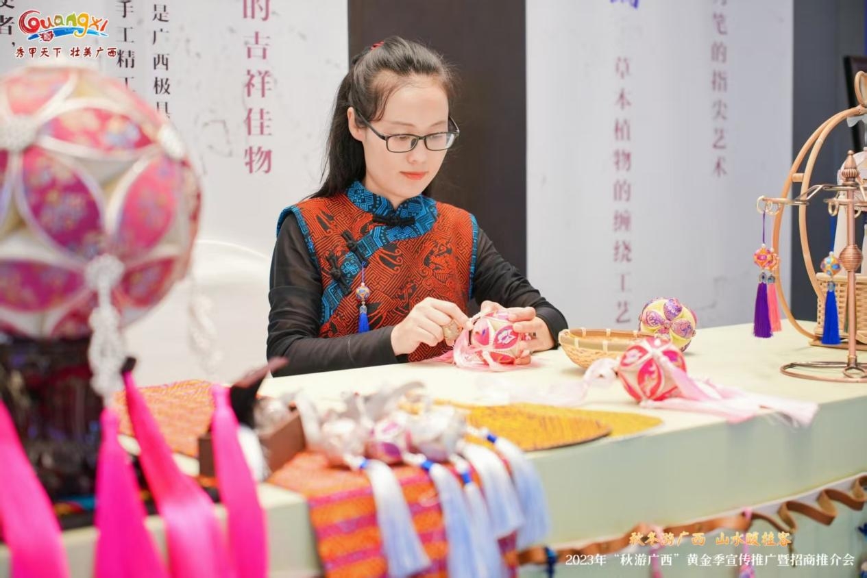 彩线织绣,传递锦绣前程(广西·王秀芬):扎根广西靖西,将壮族绣球编织成传递情谊与祝福的美丽符号。新春抛绣球,是壮乡祈福的古老习俗,那精巧的绣球里,满载着手艺人的温度,为千家万户“绣”出新年的团圆与锦绣前程。