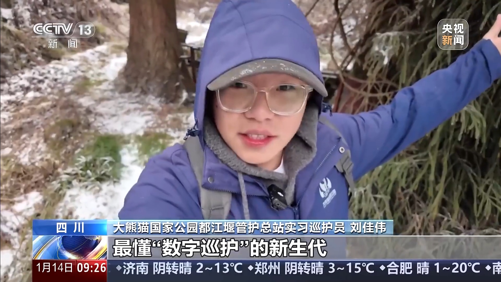 2026年开年,四川都江堰龙池国家级自然保护区连续几天大雪纷飞,这片海拔1800米的森林是野生大熊猫的家园,也常年驻守着一群鲜为人知的“国宝巡护队”。 大熊猫国家公园都江堰管护总站实习巡护员 刘佳伟:我是一名巡护队新人。2026年第一个小目标,就是跟上尚老师和朱老师的脚步,他们告诉我上面有国宝大熊猫和它的小伙伴们,我们的新年首巡正式开始。