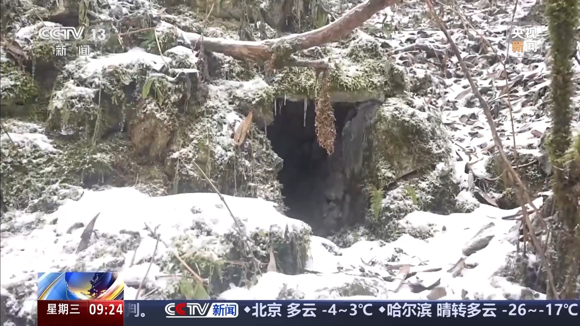 大熊猫国家公园都江堰管护总站科研所所长 尚涛:这就是给动物提供了一个临时遮风挡雨的一个地方,通过这种地方的话,因为它毕竟比野外更舒服一点,这样能够增加它在附近逗留的时间,然后我们用了一个红外相机24小时监控。