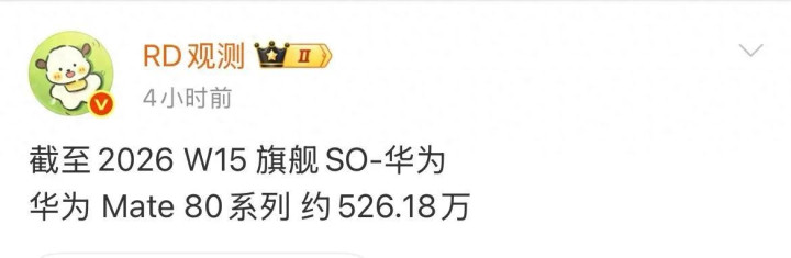 全球好,数码博主“RD不雅测”刚刚在微博上公布了最新数据,华为Mate 80系列的累计销量照旧龙套了526万台大关! 这个音讯一出,通盘手机圈王人欢欣了。要知谈,华为Mate 80系列前年11月底才发布,到目下也就5个月控制的时代,能得到这样的收获,确凿让东谈主刮目相看。 惊东谈主数据曝光 把柄“RD不雅测”的统计,罢休2026年第15周,华为Mate 80系列在国内的累计销量达到了约526.18万台。这个数字不仅刷新了华为自己高端旗舰的销售记载,更关键的是,它稳坐国产高端手机销量第一的宝座。 追想一下历史数据,本年3月初第9周的时候,Mate 80系列的销量还“唯有”405.48万台。到了第11周龙套453万台,第14周龙套508万台,目下又龙套了526万台。这种稳步增长的势头,在竞争热烈的高端手机阛阓里确凿很繁难。 更让东谈主惊喜的是,这个增长速率比上一代Mate 70系列快了不少。数据透露,Mate 70系列上市88天销量约为280万台,而Mate 80系列同时销量多出了近100万台,增幅达到了40%控制。 国产高端第一 在国产高端旗舰阵营里,华为Mate 80系列的进展不错说是“一骑绝尘”。同时对比来看,小米17系列销量约391.67万台,vivo X300系列约173.39万台,OPPO Find X9系列约144.34万台。 这意味着什么?意味着华为Mate 80系列的销量,21点游戏官方网站比小米17系列罕见130多万台,差未几是vivo X300系列的3倍。这种最初上风,让华为稳稳守住了“国产第一”的荣耀。 天然和苹果iPhone 17系列2721万台的销量比较还有差距,但算作国产自研旗舰,能在高端赛谈拿下这样的收获,照旧兑现了浩繁龙套。毕竟高端手机阛阓遥远被国际品牌主导,华为能杀出一条血路,确凿按捺易。 热销背后原因 那么问题来了,华为Mate 80系列为什么能这样火?从阛阓反馈来看,主要有几个原因。 发轫是麒麟芯片的强势记忆。全系搭载麒麟9020/9030/9030 Pro芯片,自研芯片产能稳步爬坡,现货供应充足,开云app澈底告别了缺货难题。这让许多恭候麒麟芯片记忆的用户,终于比及了满意的家具。 其次是价钱政策的移动。比较上一代Mate 70系列,Mate 80表率版起售价直降800元,仅4699元起。在当下手机集体涨价的阛阓环境中,这种“加量不涨价”的作念法,大大裁减了高端旗舰的脱手门槛,诚意十足。 第三是鸿蒙系统的升级。首发搭载HarmonyOS 6操作系统,系统运动度、狡饰安全、多开荒互联智力全面升级,打造了唯一无二的聪惠生态体验。这种生态上风,是其他品牌很难复制的。 阛阓容貌变化 华为Mate 80系列的热销,也反应了中国手机阛阓容貌的变化。把柄巨擘阛阓数据透露,2026年1月,华为以18.6%的份额位居中国手机阛阓首位。 这意味着华为不仅在高端的Mate系列上进展出色,在通盘手机阛阓也在稳步回升。从被制裁后的低谷,到目下的强势记忆,华为用实力施展注解了我方在手机行业的地位。 更弥留的是,华为的收效也给其他国产手机品牌带来了信心。它施展注解了只须家具充足硬核,用户体验充足好,国产手机完全有智力在高端阛阓与国际品牌一较凹凸。 过去掂量 那么,华为Mate 80系列的过去会如何?从目下的增长趋势来看,行业无数预期其全周期销量有望冲击千万台级别。 若是按照目下的速率不竭增长,Mate 80系列很可能成为华为历史上最收效的旗舰机型之一。这不仅对华为来说是善事,对通盘国产手机行业来说亦然饱读吹东谈主心的音讯。 跟着销量执续稳步增长,深信华为Mate 80系列还将创下更好的收获。而国产高端手机也将在全球阛阓占据更弥留的位置,这是通盘中国手机品牌共同奋勉的标的。 “RD不雅测”的这组数据,给咱们提供了一个不雅察中国高端手机阛阓的窗口。华为Mate 80系列526万台的销量,不仅是一个数字,更是一种信号——国产高端手机正在崛起。 关于浮滥者来说,这十足是个好音讯。有竞争才有越过,有遴选才有更好的家具。华为的收效,会促使其他品牌愈加奋勉,最终受益的照旧咱们用户。 从首销期线下门店列队抢购,到上市数月执续热销,华为Mate 80系列的收获,既是浮滥者对华为品牌的认同,亦然国产高端旗舰崛起的有劲施展注解。 你的下一部手契机研究华为吗?迎接在驳倒区共享你的倡导!