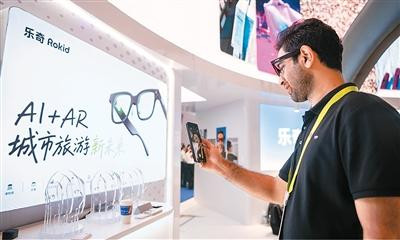 第六届中国国际挥霍品展览会上,参展客商体验AI眼镜。 石中华摄(东说念主民图片)