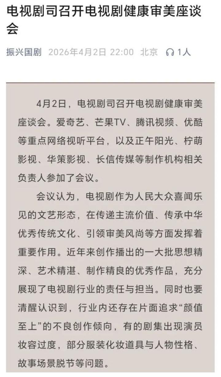 这场对于“一张脸”的争议,最终演酿成了一场席卷总共影视圈的风暴。 4月2昼夜深,国度播送电视总局电视剧司目生“加急”发文,召开电视剧健康审好意思谈话会,言辞强烈地剑指行业内“颜值至上”“妆容过度”“服化说念与扮装脱节”等乖张审好意思倾向,坚决阻绝“颜值珍藏”。会议还相配暴戾,最基本的极少条目是“演什么要像什么”。 这到底是一场针对“粉底”的审好意思整风,还是关乎总共行业命悬一线的底层逻辑重构?当“流量依赖”的泡沫被点破,国产剧还能靠什么留下不雅众的心? 很长一段时期里,国产剧的制作逻辑似乎堕入了一种奇怪的定式,制片方拿着脚本去找演员,看的不是扮装适配度,而是谁更“扛剧”;平台采购神色,优先看的不是故事逻辑,而是主演的“咖位”与“颜值”。